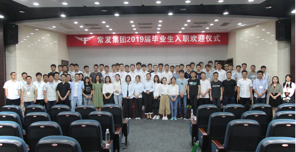 2019年7月8日,常發(fā)大廈三樓1號會議室洋溢著歡樂喜慶的氣氛,來自全國各地的70余名重點大學畢業(yè)生精神煥發(fā),當天是常發(fā)集團2019屆畢業(yè)生的正式入職日,集團為此舉辦了隆重的歡迎儀式。儀式由集團人力資源中心副部長李應東主持,集團總經(jīng)理黃桂榮、常務副總唐金龍、人力資源中心副部長黃晉雄、常發(fā)制冷代理總經(jīng)理黃玉光、恒創(chuàng)熱管理公司常務副總上官紅玉以及常發(fā)地產(chǎn)、華創(chuàng)航空相關領導蒞臨現(xiàn)場。