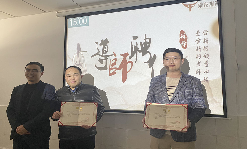 2021年4月6日,常州常發(fā)制冷科技有限公司舉辦20屆儲(chǔ)備干部季度述職報(bào)告會(huì)及拜師會(huì)。集團(tuán)人資副部長(zhǎng)李應(yīng)東、常發(fā)制冷總經(jīng)理劉強(qiáng)、常發(fā)制冷財(cái)務(wù)總監(jiān)江俊杰、常發(fā)制冷生產(chǎn)總監(jiān)張耀及常發(fā)制冷相關(guān)部門(mén)領(lǐng)導(dǎo)出席本次活動(dòng)。